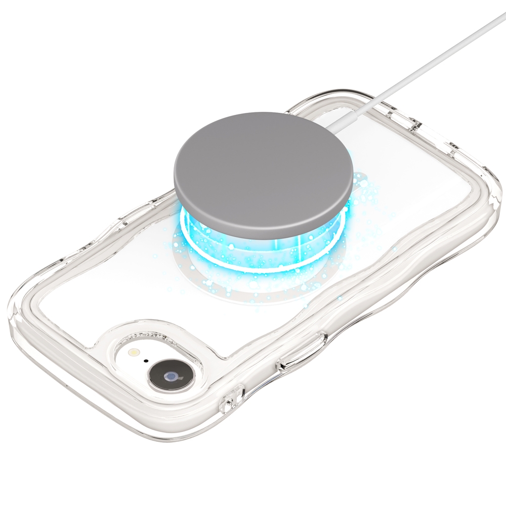 やわらかな波打つデザインが可愛らしい各種MagSafeアクセサリーに対応したiPhone 16e 用 ウェーブ エアクッションケースです。側面のTPU素材が2層構造で内側は硬質なTPU素材でiPhone本体をしっかりとホールド、外側は柔らかなTPU素材で手にフィットしやすく、外部の衝撃からiPhone本体をしっかり護ります。背面は、薄くて耐久性に優れたポリカーボネイトを採用し、iPhone本来のデザインを活かすクリアタイプ。シールや写真を入れて自分好みにカスタマイズすることが出来ます。メタルリング搭載でMagSafeアクセサリーをピタッと簡単装着。米国国防総省の軍用規格(MIL-STD-810G)の落下と振動試験をクリアしたタフ設計。お手持ちのストラップをつけて落下を防げるストラップホール付き。