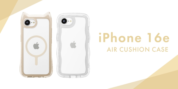 ネコミミやウェーブ型などのかわいいデザインが特徴的なiPhone 16e に対応した、360度エアクッション構造で衝撃から端末を守るケースを株式会社PGAが3月中旬頃発売を決定