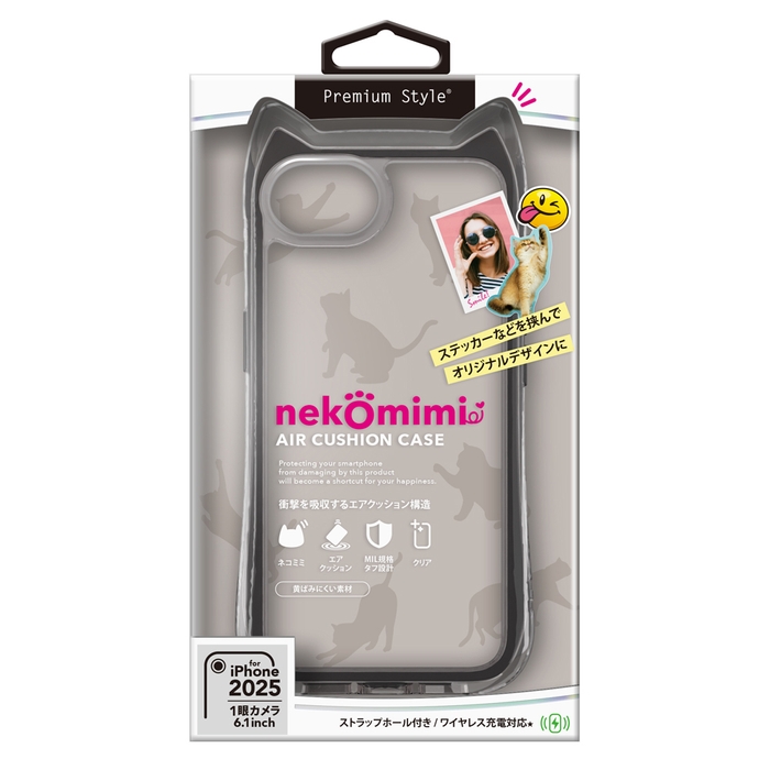 可愛らしい猫耳デザインのiPhone 16e 用 ネコミミ エアクッションケースです。側面のTPU素材が2層構造で内側は硬質なTPU素材でiPhone本体をしっかりとホールド、外側は柔らかなTPU素材で手にフィットしやすく、外部の衝撃からiPhone本体をしっかり護ります。背面は、薄くて耐久性に優れたポリカーボネイトを採用し、iPhone本来のデザインを活かすクリアタイプ。シールや写真を入れて自分好みにカスタマイズすることが出来ます。米国国防総省の軍用規格(MIL-STD-810G)の落下と振動試験をクリアしたタフ設計。お手持ちのストラップをつけて落下を防げるストラップホール付き。カバーを付けたままワイヤレス充電が可能です。