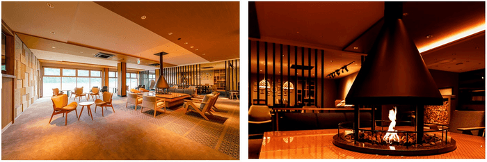 ご到着時やお風呂上りなど、ご滞在中にいつでもご利用いただける暖炉ラウンジを新設。
