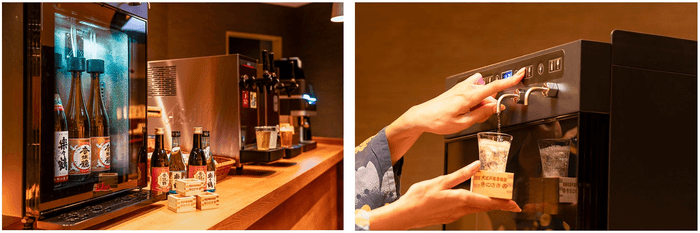 ラウンジでは、生ビールやハイボールの他に、地元・兵庫の地酒を含むアルコール、コーヒーなどのソフトドリンクやアイスキャンディーを追加料金無しで自由にお楽しみいただけます。