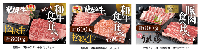 本キャンペーンは、JAタウンのショップ「飛騨・美濃うまいもん広場(岐阜)」と「三重の味自慢(三重)」が連携し、東海地方が誇る岐阜県の「飛騨牛」、三重県の「松阪牛」を食べ比べできるセット商品を販売します。ご家族で楽しむのはもちろん、特別な贈り物にもぴったりです。あわせて、「飛騨旨豚」と「伊勢うまし豚」のセット商品もご用意します。