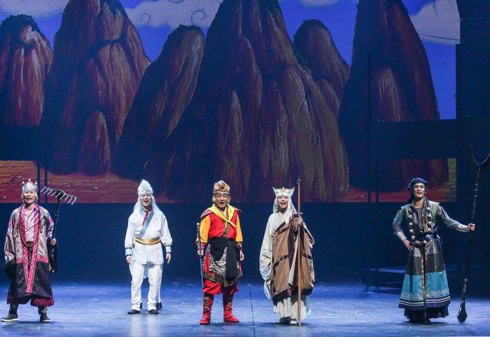 花果山の石の卵から生まれた孫悟空(片岡愛之助)は天上界で大暴れし、玉帝(曽田陵介)の怒りを買い、五行山に封じ込められるが、五百年後、三蔵法師(小池徹平)に助けられ、有難いお経を取りに行くお供をすることに。