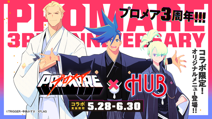 株式会社ハブ(本社:東京都千代田区、代表取締役社長:太田 剛)が運営する英国風PUB「HUB」の一部店舗は、株式会社ミクシィ(東京都渋谷区、代表取締役社長:木村 弘毅)がアニメーションスタジオ「TRIGGER」と初めて共同製作したオリジナル劇場アニメーション作品『プロメア』の3周年記念企画の一環で、『プロメア』とのコラボレーションキャンペーンを実施いたします。
