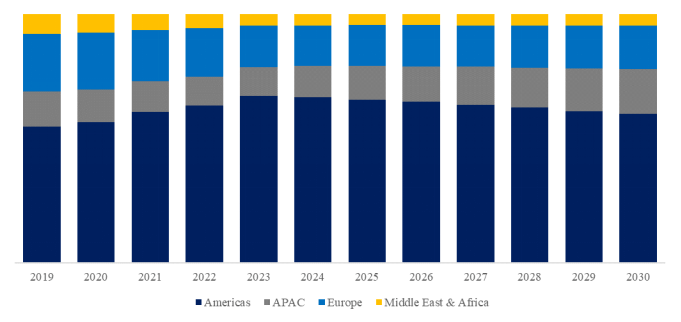 図. サービスとしての宇宙インフラ、世界市場規模、地域別内訳