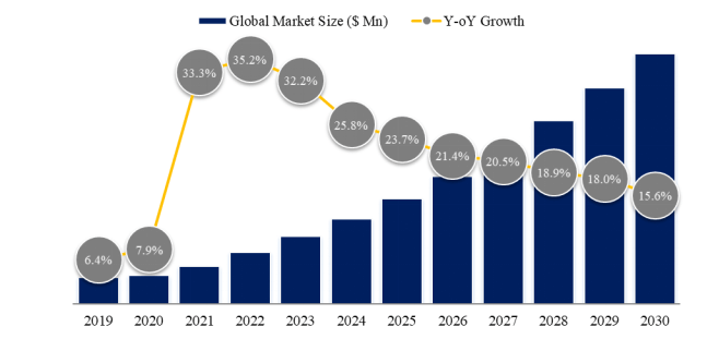 図. サービスとしての宇宙インフラの世界市場規模(百万米ドル)、2019-2030年