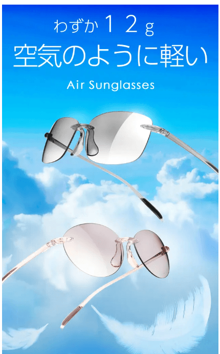 新体験!かけているのを忘れる軽さとフィット感。 UV対策も万全なエアーサングラス
