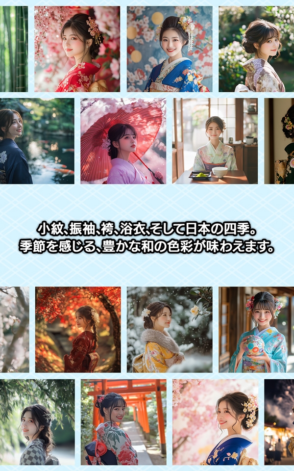 AI Gallery -Kimono-:四季折々の自然と和装が織りなす、日本文化の美を表現