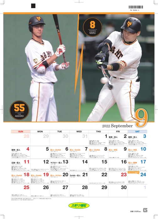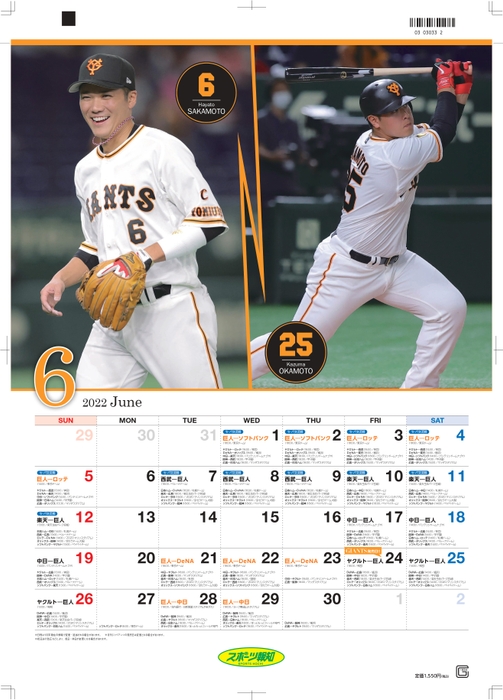 「2022 GIANTSスケジュールカレンダー」3月15日(火)から発売【報知新聞社】