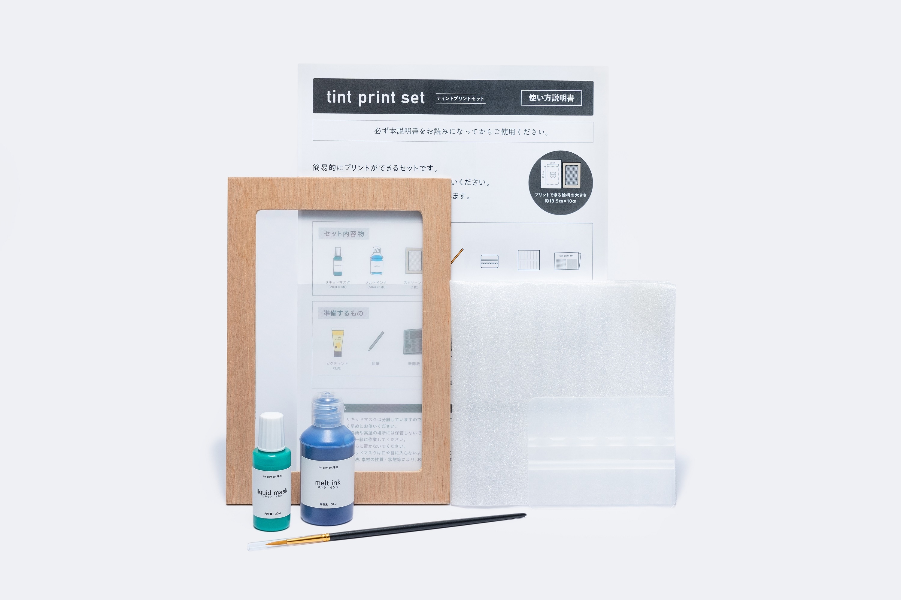 「ティントプリントセット」は感光機を使うことなく、驚きの手軽さでオリジナルのスクリーン版が製作できるものです。「ピグティント」と併用し、ステンシルとは一味違うデザインのプリントが可能です。