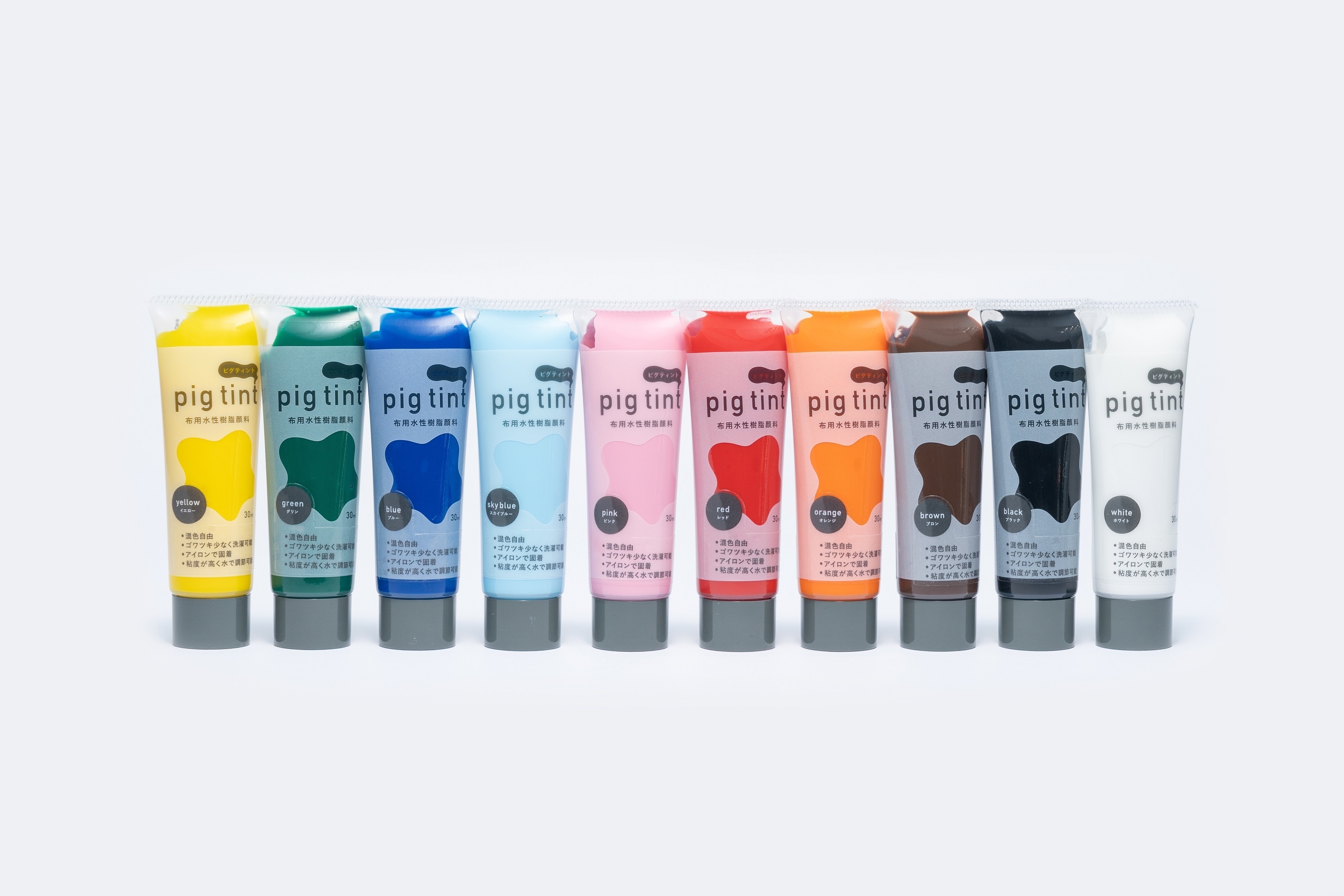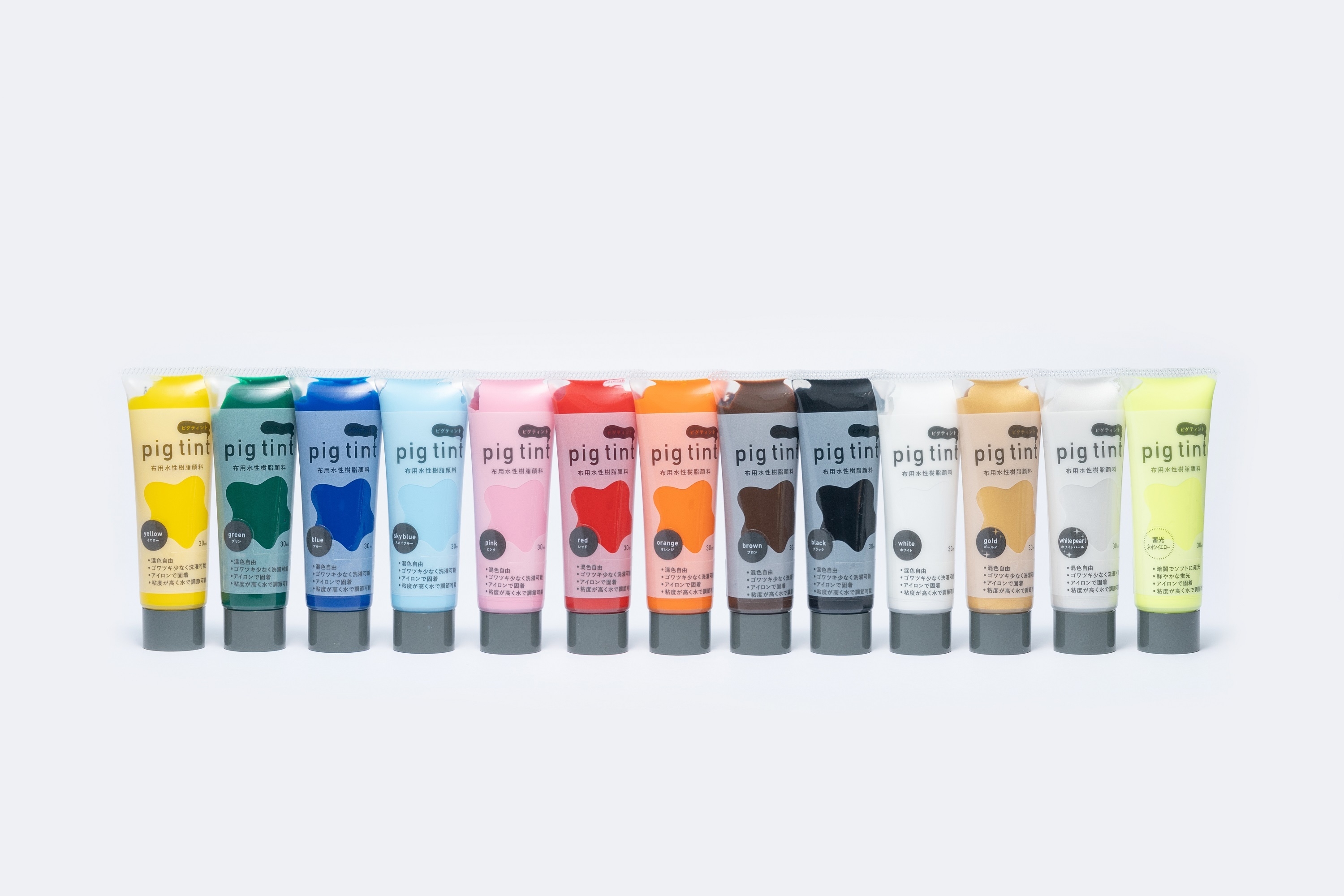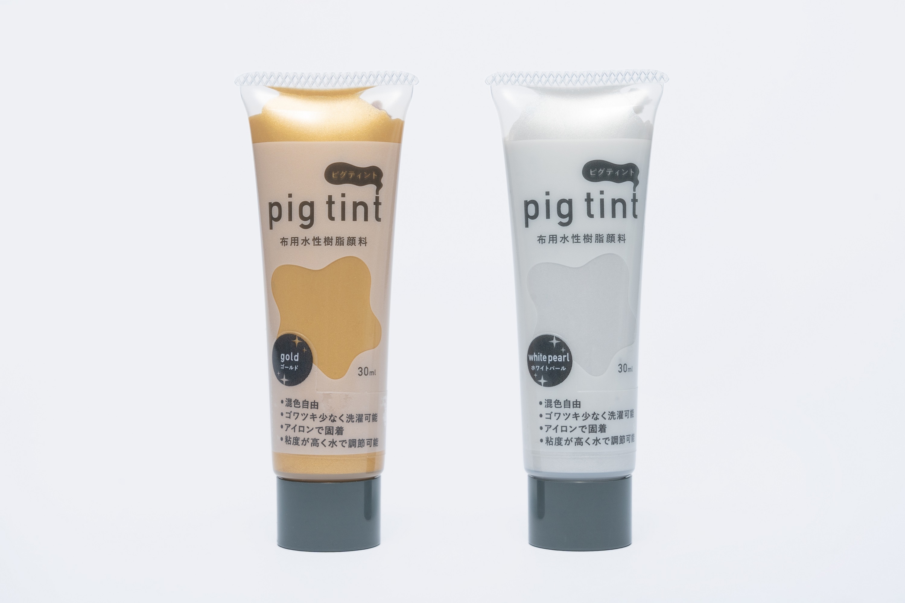新顔料「ピグティント」は粘度が高く、スクリーン版を使ったプリントに最適です。また粘度はお好みにあわせて水で調節可能でステンシルや手描きも自在です。