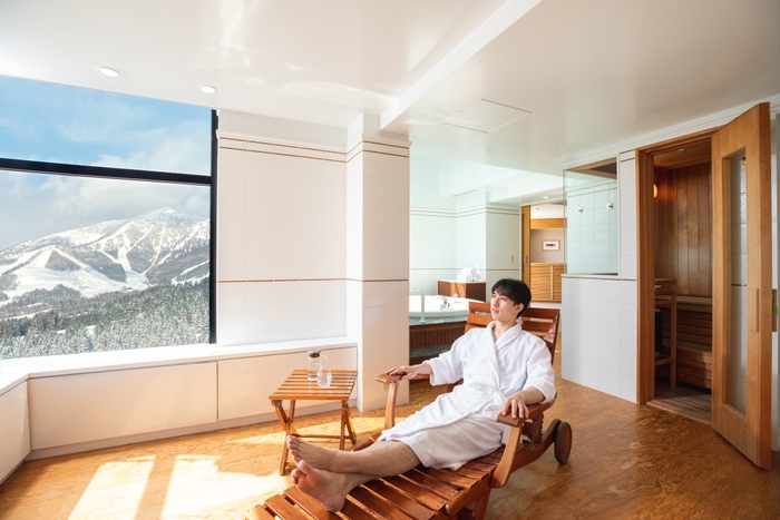 客室にはプライベートサウナと展望ジェットバスが備わっています。この展望ジェットバスは窓がすぐそばにあるため、絶景を楽しみながら入浴できるのが特徴です。さらに、当プランではリクライニングチェアと、汗をかいた時に失われる成分を補給するための飲み物を客室に用意します。プライベートサウナと展望ジェットバスを利用した後、北海道の雄大な雪景色を眺めながらリクライニングチェアで休憩するのがおすすめです。このような過ごし方で、頭をすっきりさせた状態で仕事に臨むことができます。また、仕事が終わった後にサウナを利用することで、オンとオフを切り替えられます。そのため夜には深く眠れるようになり、翌朝の目覚めが爽快です。プライベートサウナなので24時間誰にも邪魔されず、自分の好きなタイミングで利用できます。