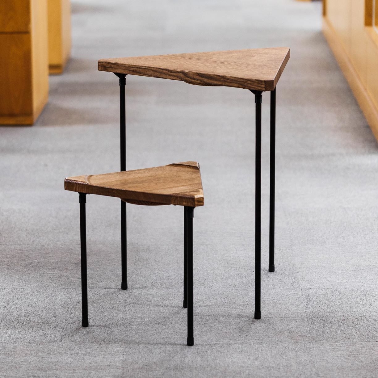 WOM -ワム- Multi triangular wood table & stoolとは?