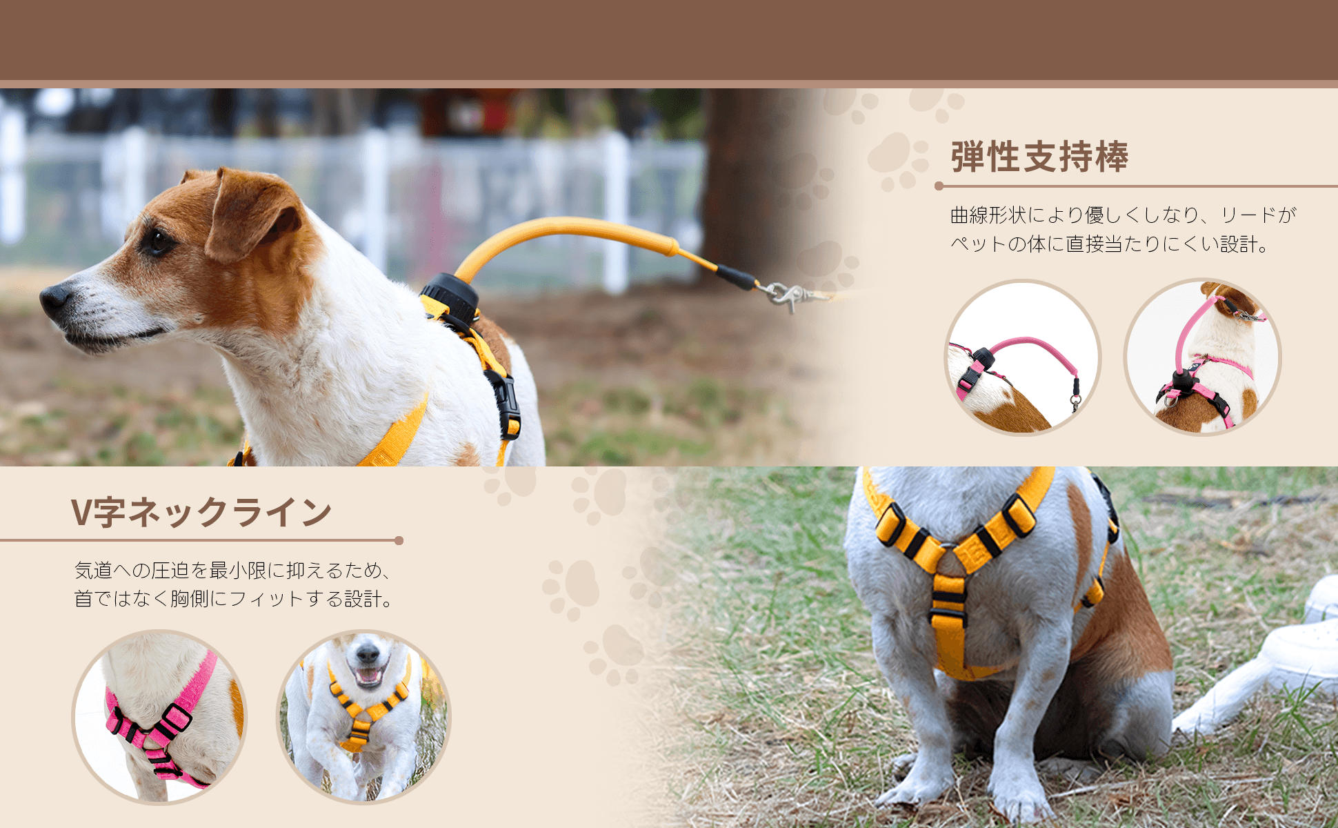 「絡まない、新感覚ハーネス。自由な動きをサポート。」