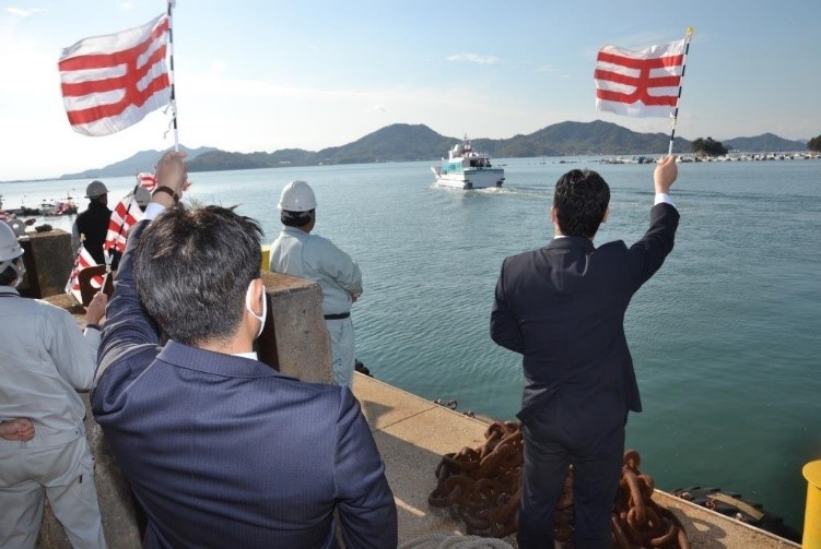 今回竣工した「みしま」は総トン数19トン、旅客定員は70人で、徳島県阿南市の答島港と伊島を結ぶ旅客船として活躍します。