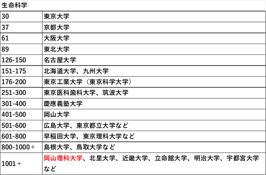 ・「生命科学」分野 1001+位/ 国内45位タイ