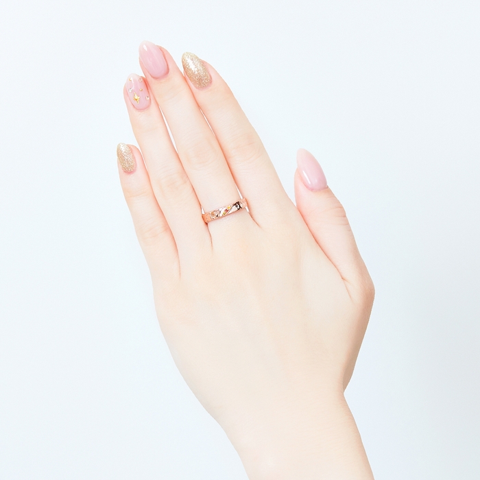 グリフィンドール寮章の柄とライオンのシルエットを取り込み、カラーストーンとピンクゴールドコーティングで表現しました。