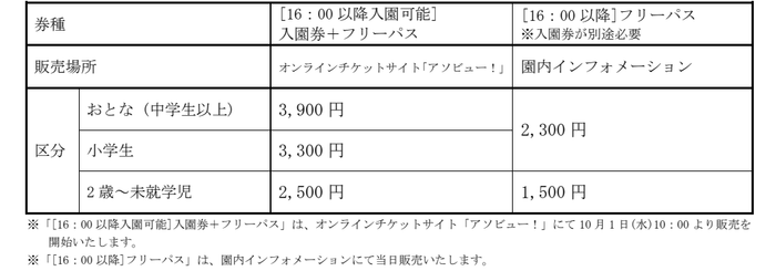 ・販売時間:「光の遊園地」開催日のイルミネーション点灯時間~閉園時間の30分前まで
