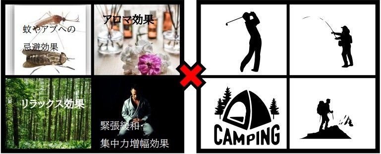 昨今、女性のゴルフ人口が増加する中、ゴルフ場での虫は女性の最大の敵です。虫を寄せつけず、リラックスしたアロマ効果の中、ナイスショットをしてほしいというてらゆーさんの気持ちを反映しています。