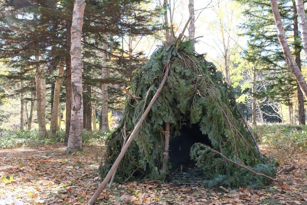 古来アイヌの人々は、数日間にわたり山や川に狩猟に出かける際、松の枝葉を使い「クチャ」と呼ばれる仮小屋を作り、ここを拠点に狩りを行っていました。このクチャ作りに使われたのがアカエゾ松の葉と木でした。