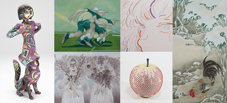 岩絵具などの伝統的な技法を用いた日本画、荒々しい筆致で自由に描かれた油画、イラストのような版画やアニメの世界から飛び出したような立体造形など、さまざまな ジャンルの作品を一度にご覧いただけます。