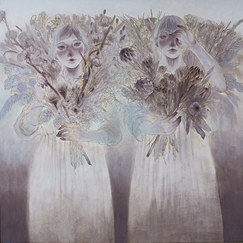 同大学の在学生、卒業生、そして日野田 崇氏をはじめとする現在、作家としても活躍している教員ら15名による絵画や立体造形など、約30点の多彩な作品を展示します。