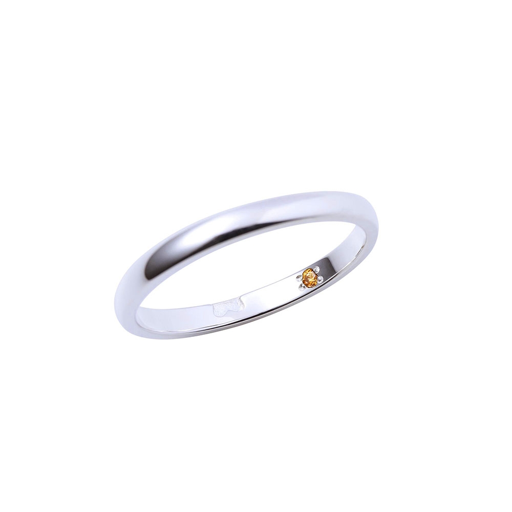 シンプルなストレートリングの内側には花子のイメージカラーストーンをセット。