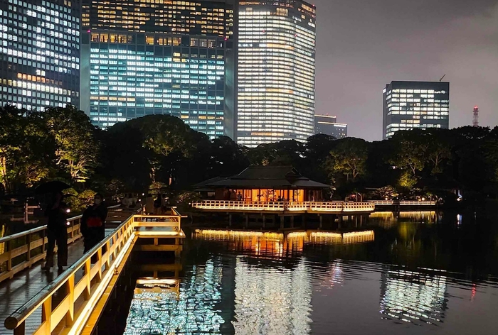 浜離宮恩賜庭園では、本日10月31日(金)から11月5日(水)までの6日間、十三夜に合わせて、「浜離宮でお月見散歩~将軍の御庭で栗名月を愛でる~」を開催します。通常は入園できない夜21時まで開園時間を延長し、園内をライトアップします。今年は「お伝い橋」の修復工事のため、今回だけの特別なルートで夜の景観をご覧いただけます。