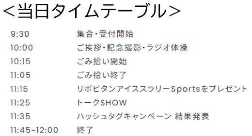 ・参加費無料で、「リポビタンⅮ」(指定医薬部外品)と「リポビタンアイススラリー Sports」