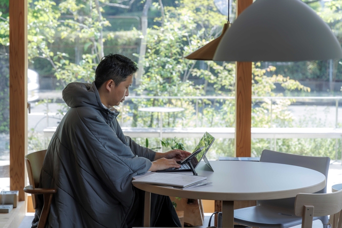 機能を高めるために何層も重ねるのではなく、1枚で多機能な2つの素材を組み合わせたことで軽さ680gを実現。薄さは1cmで厚着感がなく、デスクワークで肩が凝りやすい人にも安心。
