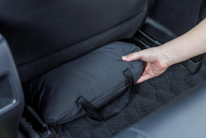 バッグを付属せず、内側のポケットがそのまま収納袋に。さらに畳み方の説明や動画をデザインとして採用しているので、無駄な紙や生地は使っていません。