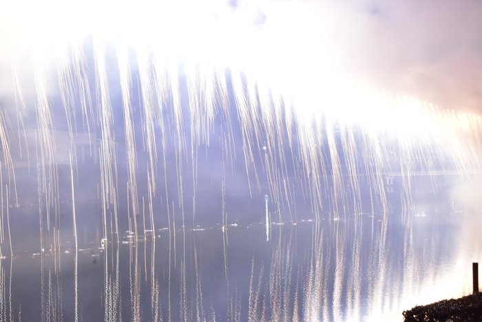 高さ・直径ともに大観覧車レインボーの2倍以上で目の前を覆いつくす花火は火薬の熱さを感じるほど。