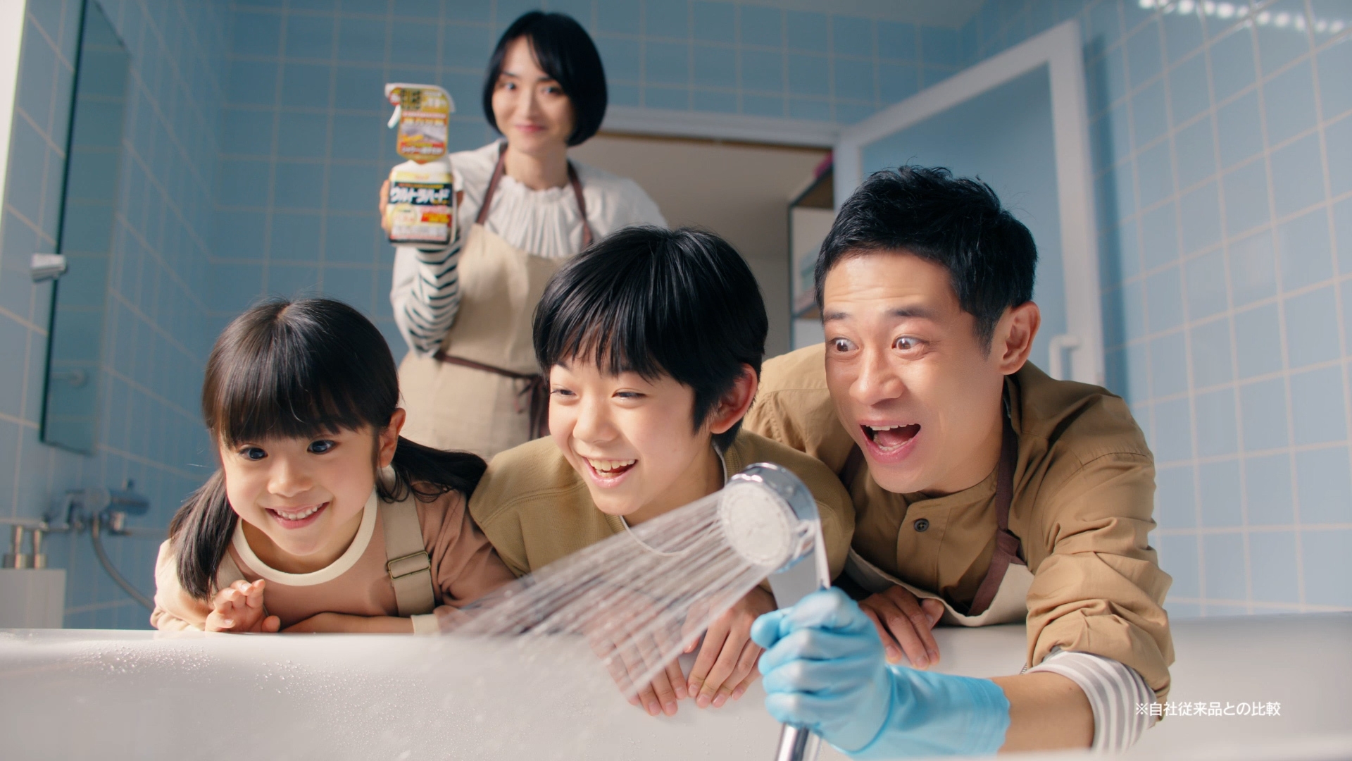 家族みんなで落ちにくい汚れに挑んだり、お掃除の動画撮影をしたりと、家族で楽しみながら掃除を通して快適な住まいづくりにチャレンジする様子を描いています。