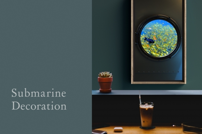 また、同時リリースされた、Atmoph Window内に表示させることができるデコレーションは、なんと潜水艦の窓。薄暗い艦内を表現したメタリックな船体から覗く、今いる場所とは全くの別世界はまるでアトラクションのようです。お部屋ごと一気に、海の中にトリップしたかのような、つい引き込まれてしまう底知れない海中の魅力をぜひ体感してください。