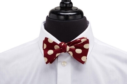 A maroon and white polka dot Perry Ellis brand bow tie, owned by Steve Jobs