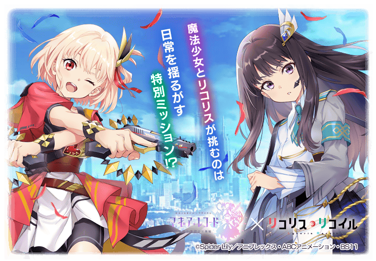 『マギアレコード 魔法少女まどか☆マギカ外伝』9月22日より「リコリス・リコイル」コラボにて「錦木千束」「井ノ上たきな」が登場するガチャ、イベントを開催予定!