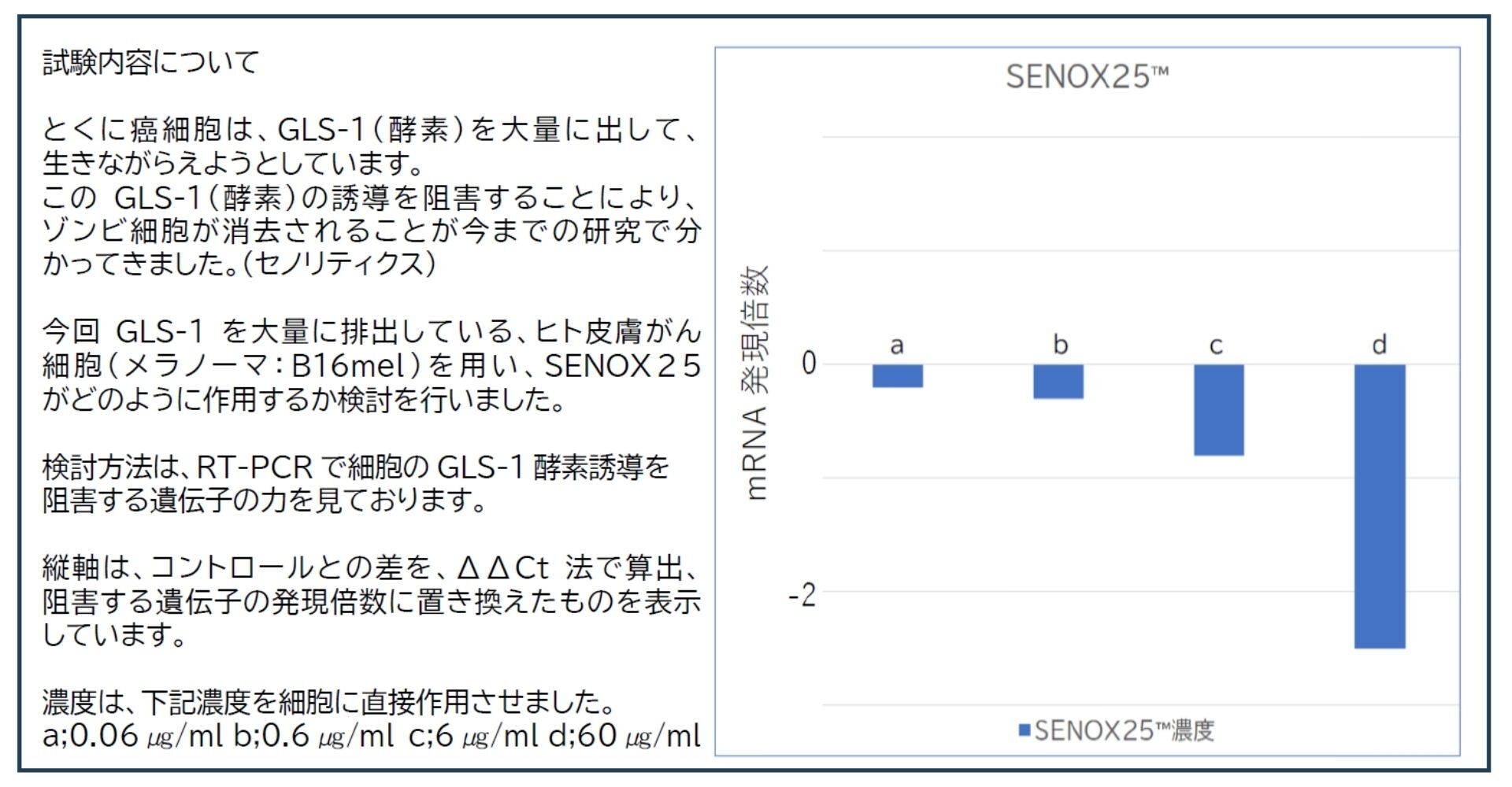 SENOX25(TM)にGLS-1遺伝子発現を濃度依存的に抑制する効果が認められました。