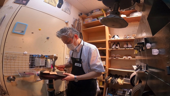 もはや靴をイチから作るのと同じ工程を行う三瓶さん。激しく劣化していた革靴に新しい命が吹き込まれました!