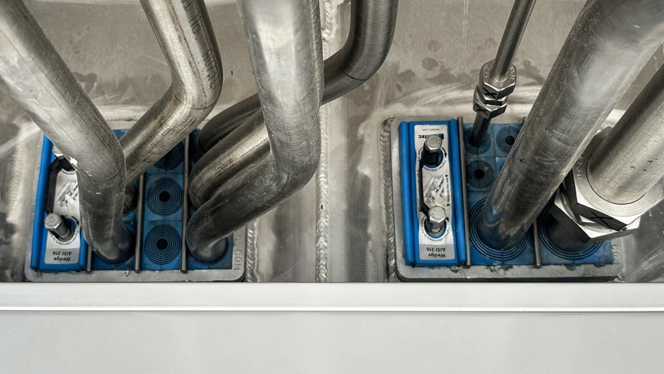 Roxtec 製品の施工は問題なく完了しました。 施工担当者からは、製品が扱いやすく、大幅な作業時間短縮と資材使用量の削減につながったとの報告がありました。 組立て式の仕組みとその柔軟性により、Roxtec シールは複雑なエリアでも効率的な施工を行うことができます。