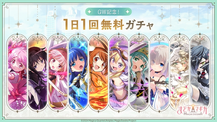 株式会社アニプレックス(本社:東京都千代田区 代表取締役 岩上敦宏 以下アニプレックス)は、『魔法少女まどか☆マギカ Magia Exedra』(Magia Exedra:マギアエクセドラ)において、4月25日(金)12:00より、新たな★5キオク[時間停止攻撃]暁美ほむら(CV 斎藤千和)が登場するピックアップガチャを開催することをお知らせいたします。さらにGWキャンペーンとして、毎日無料でガチャを引ける「GW記念!1日1回無料ガチャ」やログインでプリズムオーブや★4以上キオク確定マギアキーが獲得できる「GWキャンペーンログインボーナス」を開催いたします。