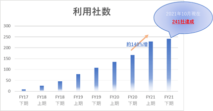 このような事例も踏まえ、昨今では企業がコンプライアンスを守るため、リスクある取引をしないために取引先に対する反社チェック・コンプライアンスチェックを行うことがとても重要となっており、企業の意識変化に後押しされる形で、「RISK EYES(リスクアイズ)」でも利用社数が前期比140%を超える実績を上げています。