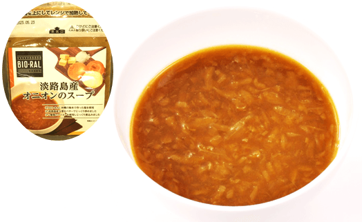 日照時間が長く温暖な気候の淡路島で、通常より時間をかけて栽培されるため辛みが少なく甘い“淡路島産玉ねぎ”を使用。「BIO-RAL 沖縄の海水で作った塩」で味を調えました。