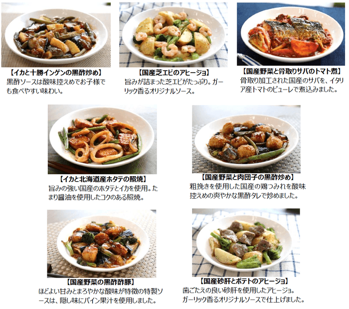 素材はすべて国産野菜を使用し、調味料や着色料などの食品添加物にも配慮した冷凍ミールキット。フライパン一つで、時間をかけず手軽に本格的なメニューを作ることができます。必要な分だけカットした食材がセットされているので食品ロスも出ません。現在新商品も合わせ13種類を展開。