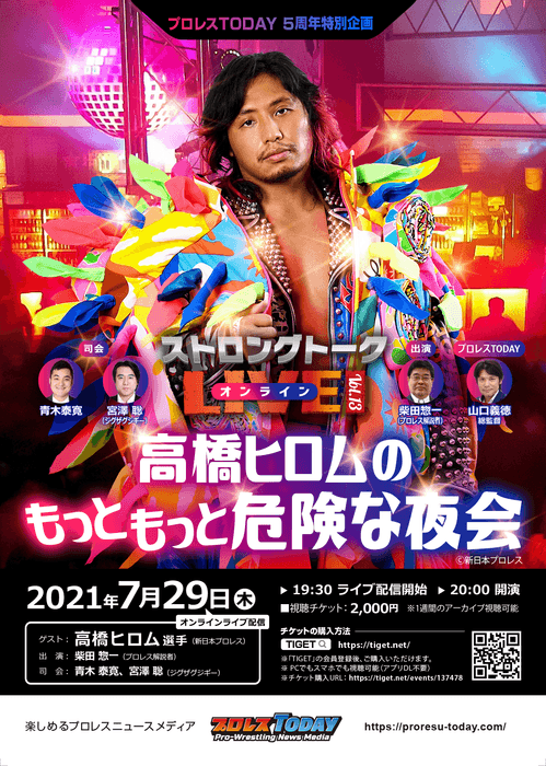 プロレスTODAYを運営する株式会社リアルクロス(本社:東京都台東区、代表取締役:山口義徳)は新日本プロレスで大人気のロス・インゴベルナブレス・デ・ハポンのメンバーである高橋ヒロム選手をゲストに招き、オンライントークイベント「高橋ヒロムのもっともっと危険な夜会」を2021年7月29日に開催します。