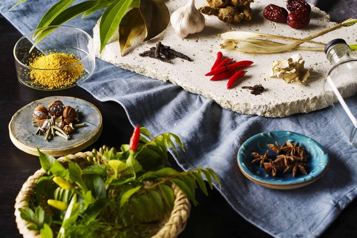 ・牛フィレ肉の月桃包み焼き×ローゼルティー、ノンアルコールメルロー、コーヒー豆