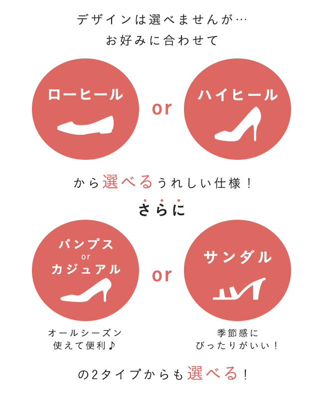 パンプス、ブーツ、サンダルなど長く使えるベーシックデザインから、トレンドシューズまでインターネット販売ならではの品揃えの良さが特徴です。