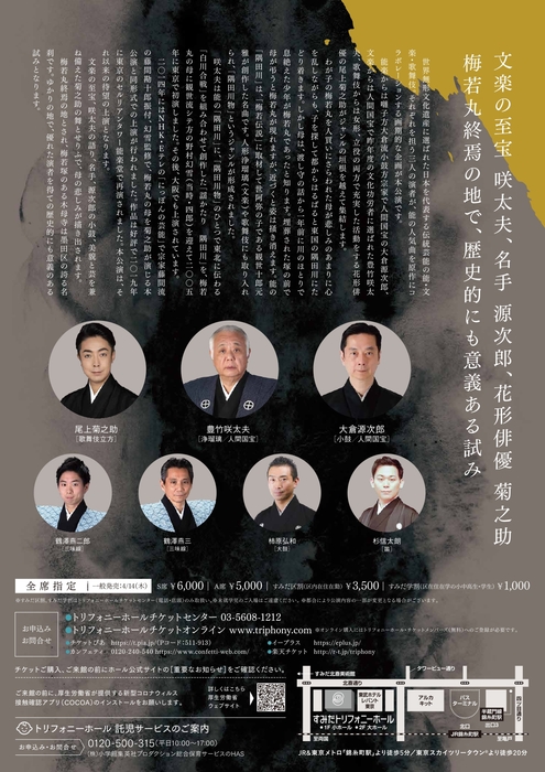 能・義太夫・歌舞伎 各界の第一人者がジャンルを越えて共演 『能・義太夫・歌舞伎 謡かたり「隅田川」』上演決定 カンフェティでチケット発売