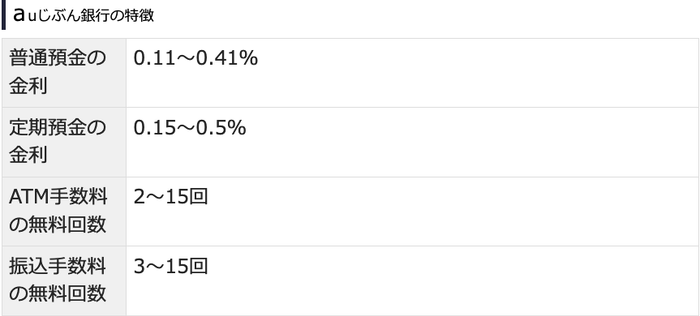 ATMや振込手数料の無料回数が多く、日常の資金管理がスムーズに行えます。また、au PAYやKDDIのサービスと連携することで、さらにお得な利用が可能です。