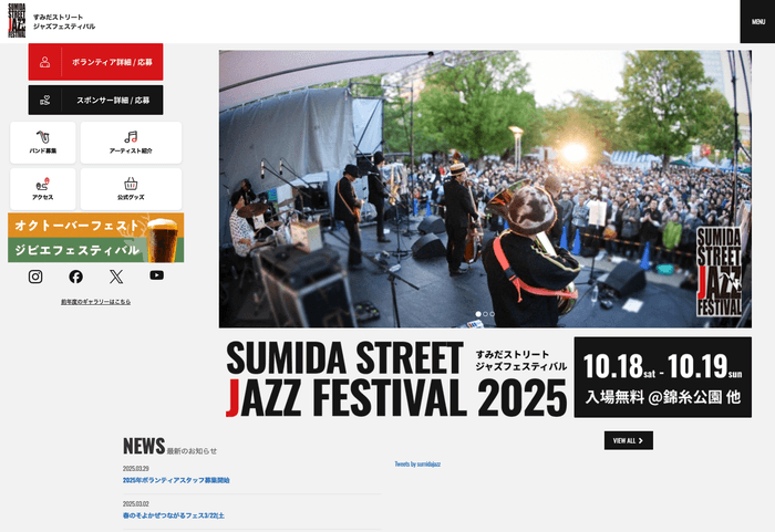 すみだストリートジャズフェスティバル実行委員会(実行委員長:多賀 健太郎)は、「すみだストリートジャズフェスティバル 2025」を10月18日(土)・19日(日)に開催することをお知らせします。