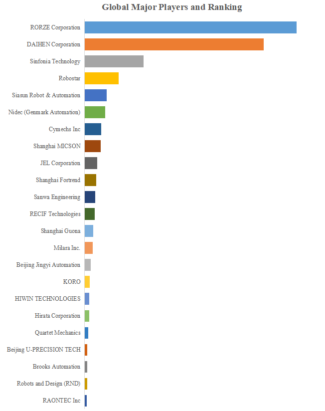 YHResearchのトップ企業研究センターによると、半導体ウエハ搬送装置の世界的な主要製造業者には、RORZE Corporation、DAIHEN Corporation、Sinfonia Technology、Robostar、Siasun Robot & Automation、Nidec (Genmark Automation)、Shanghai MICSON、Cymechs Inc、JEL Corporation、Shanghai Fortrendなどが含まれている。2023年、世界のトップ10企業は売上の観点から約84.0%の市場シェアを持っていた。